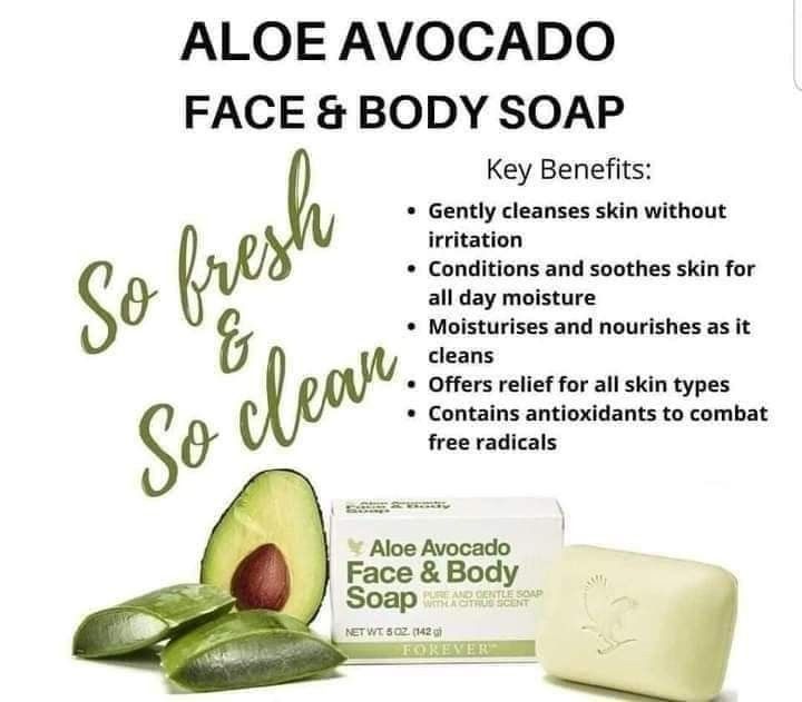 Forever’s Aloe Avocado Face & Body Soap smooths, nourishes and moisturizes without irritation, even for those with sensitive skin. Gentle enough for your face or your entire body, the freshly-picked citrus scent will help wake you up in the morning and the softness from Aloe Avocado Face & Body Soap will last throughout the day.