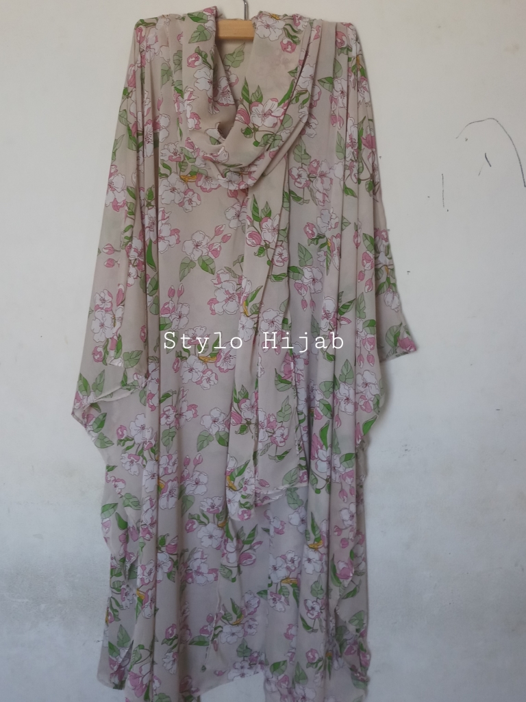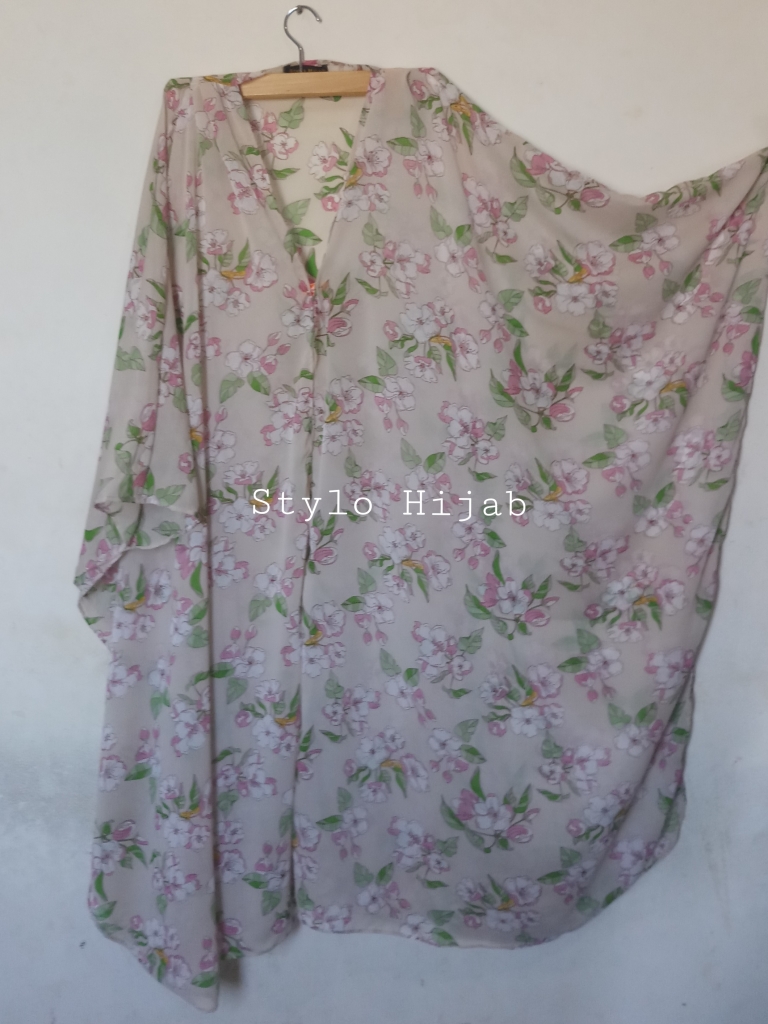 Its Fabric is Printed chiffon. It is front open Abaya with Stoller. It is suitable for all seasons specially in summer season. Its standard size is 50 inch but size can be changed according to customer choice.