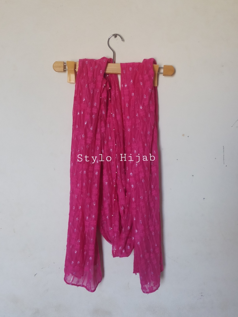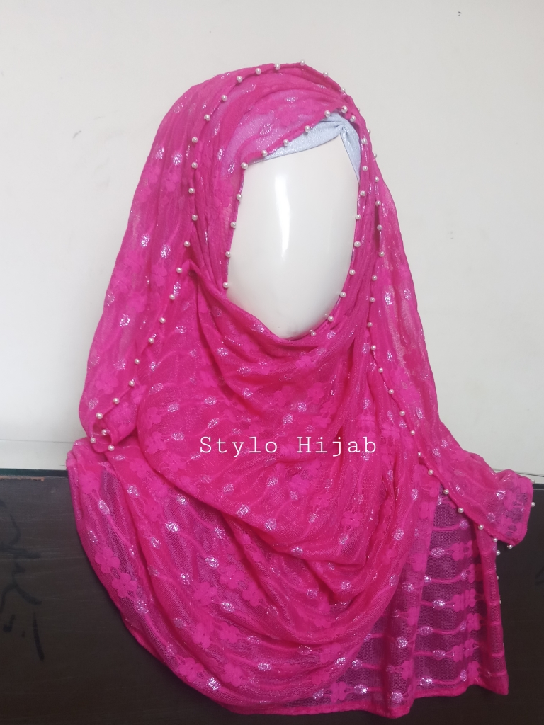 Pink Fancy Beaded Hijab is specially designed for college University and office going girls & Women. It can be wear in different functions. Hijab is very easy to Wear Hectic free fully chest covered. Colour is Pink & Silver with attached quality beads. It is very easy & ready to wear . It is latest designed popular in all girls & Women