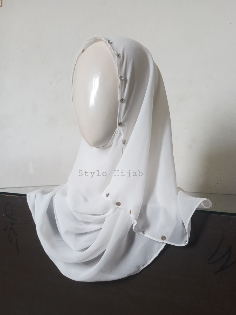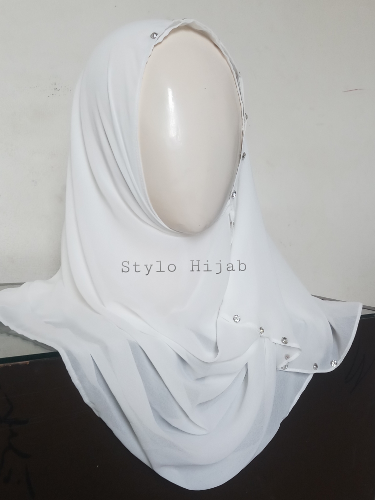 Buy it nowWhite Mirrored Pinless Hijab is specially designed for school & college going girls. It can be wear in Spring, Summer, Fall and Winter. Hijab is very easy to Wear Hectic free fully chest covered. It is soft Korean Chiffon and very comfortable Stretch Fabric. It is very easy to wear without pins. It is latest designed popular in sober girls.